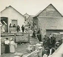 Jones Island Docks; the 2 women were school teachers waiting for the boat back to mainland Milwaukee, 1912
