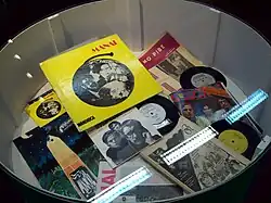 The first album and some singles by Manal, exhibition Pidamos peras a Jorge Álvarez, at the National Library