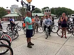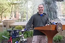 In 2016, Elorza set a goal of reaching carbon neutrality by 2050.[20] Elorza is a supporter of improving the city's biking infrastructure, and in 2017 a new greenway opened in Roger Williams Park.[21] Elorza leads a quarterly bicycle ride through Providence called "Bike the Night" to highlight the city's cycling infrastructure.[21]