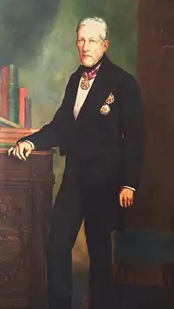 Commander of the Imperial Order of Christ and dignitary of the Order of the Rose. He was created baron via a decree in 24 of March 1847, baron with greatness via a decree of 25 of September 1849, viscount with greatness via a decree of 2 of December 1854 and count via a decree of 20 of February 1868.[1] His title refers to the Ipanema River in São Paulo, located close to the Royal Ironworks of St John.[2]