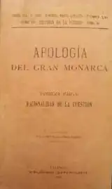 - ^ the key ones were Carlismo y españolismo (1901); El españolismo de Aparisi Guijarro (1901); Apología del Gran Monarca (1903); Exposición a Don Carlos de Borbón y Austria-Este sobre carlismo y españolismo (1904); Meditaciones religioso-políticas de un español proscripto (1904); Memorias, impresiones y pronósticos de un español proscripto (1905); Integrismo y españolismo: síntesis de la política tradicionalista fundamental (1905); for a longer list see e.g. Luz Catolica 01.11.00, available here