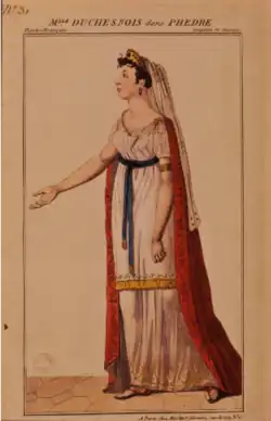 Catherine-Joséphine Duchesnois, née Rafin, often simply called Mademoiselle Duchesnois, (1777–1835) was a classical French actress who performed at the Comédie-Française.[1][2] She was also one of Napoleon's mistresses.