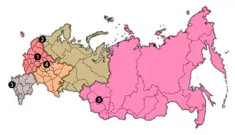 Saint Petersburg, Arkhangelsk Oblast, Kaliningrad Oblast, Leningrad Oblast, Murmansk Oblast, Novgorod Oblast, Pskov Oblast, Vologda Oblast, Karelia, Komi, Nenets Autonomous Okrug