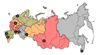 Kamchatka Krai, Khabarovsk Krai, Primorsky Krai, Amur Oblast, Magadan Oblast, Sakhalin Oblast, Sakha (Yakutia), Jewish Autonomous Oblast, Chukotka