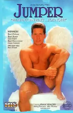 Jumper is a 1991 American gay pornographic film directed by Chi Chi LaRue and starring Ryan Yeager as the titular character. Written by Stan Ward (stage name Stan Mitchell), the film was originally released by HIS Video.[1] In the film, an angel, Jumper, is sent to Earth to spend five days seducing the following men in West Hollywood, California in order to influence their lives: an aspiring model, a straight-identified man, a nerd, and a Hollywood producer. During the journey, Jumper uses his angelic powers on a bickering couple to help them make up. Jumper is reunited at the end with the man who earlier identified as straight, whom Jumper seduced and then has fallen in love with. The film received generally positive reception and awards, including AVN Awards and Grabby Awards.