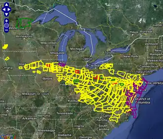 | Areas affected | United States Midwest, United States Mid-Atlantic |