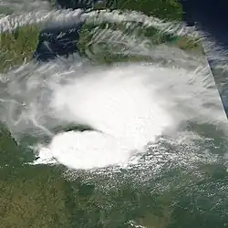 Damaging winds continued eastward across the Chesapeake Bay towards the Atlantic Ocean, losing little strength despite the cooler marine layer.[12] The derecho emerged into the Atlantic Ocean shortly before 2:00 a.m. EDT (0600 UTC) on June 30, while still producing winds as high as 81 mph (130 km/h) at the coast in Tuckerton, New Jersey and strong and damaging winds on the Delmarva Peninsula.[7] Numerous special marine warnings were issued for the coastal waters of affected states by the NWS as the derecho moved out to sea.[13] The storm dissipated around 4:00 a.m. over the Atlantic south of Long Island, New York.
