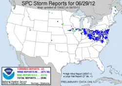 - ^ a b c d e "120629's Storm Reports (1200 UTC – 1159 UTC)". Storm Prediction Center. National Oceanic and Atmospheric Administration. June 29, 2012. Retrieved June 30, 2012.
