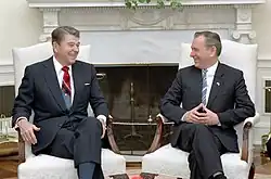 Grósz meets with U.S. President Ronald Reagan in Washington, D.C., 27 July 1988