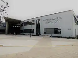 Kaiserslautern High School (KHS), formerly known as Rhine High School as well as Kaiserslautern American High School, is part of the Department of Defense Dependents Schools (DoDDS) system for military dependents. KHS, along with Ramstein High School, are two DoDDS schools that serves the Kaiserslautern Military Community (KMC) in Kaiserslautern, Germany.[2] The KMC is home to the largest American population overseas.[3][4] The school, which serves approximately 800 students with 68 full-time educators (11:1), is located on the Vogelweh Military Complex.