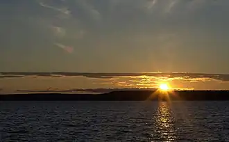 Lake Kagawong is the second largest lake on Manitoulin Island in Ontario, Canada.[1] Located in the central part of the island, the lake is drained by the Kagawong River, which falls over Bridal Veil Falls into Lake Huron. Kagawong means "[where mists rise] from the falling [waters]" in the local Ojibwe language.[2]