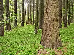 After the death of Ernst J. Martin in 1967, North Rhine-Westphalia (NRW) took over the farm. At first, the teacher-training institute of NRW, later on the University of Cologne, and, between 1987 and 2007, the University of Duisburg-Essen made it a centre of dendrological studies.[9] Since 2013 the arboretum has been in possession of the registered society "Sequoiafarm e.V.".[10] From April to October it is open to the public on Sundays and holidays.