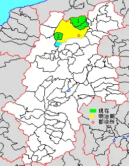 Map showing original extent of Kamiminochi District in Nagano Prefecture: