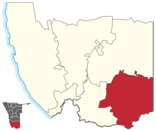 2. ^ "Creation of new regions and division and re-division of certain regions into constituencies: Regional Councils Act, 1992". Government Gazette of the Republic of Namibia. No. 5261. Government of Namibia. 9 August 2013. p. 36. Archived from the original (pdf) on 27 April 2021. Retrieved 27 April 2021.