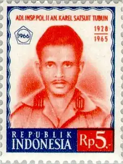 Karel Sadsuitubun (also mistakenly written as Karel Satsuit Tubun;[1] 14 October 1928 – 1 October 1965) was an Indonesian police officer and national hero. Serving as a bodyguard for deputy prime minister Johannes Leimena, he was fatally wounded in the line of duty in a scuffle by communists during the 1965 coup d'état.[2]