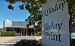 The Today Print newspaper printing press operations and the offices of CQ Today are at 5-9 Hempenstall Street.(23°20′16″S 150°30′39″E / 23.3378°S 150.5108°E / -23.3378; 150.5108 (Today Print)) Operations at the print site re-commenced in 2021.[25] This was following its closure in 2020 amid News Corporation's decision to cease the publication of most of their daily Queensland newspapers.[26][27] The printing press operations had initially commenced at the site when they were relocated from the Bulletin Building in Quay Street in 2007.[28]