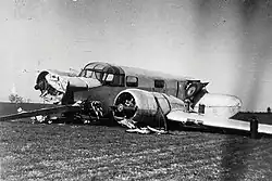 Patrolling again four days later, Stewart and Brumby sighted two Junkers Ju 87 dive bombers. Attempting to intercept them, their Mosquito was damaged by anti-aircraft fire. This led them to having to make a forced landing at Melsbroek, during which their aircraft overturned. Fortunately, neither man was hurt.[2][8] Stewart had to make another emergency landing on 1 January 1945; that day the Luftwaffe mounted Operation Bodenplatte, an attack on a number of Allied airfields. Stewart and Brumby were flying when they spotted and pursued a fighter-bomber to Rheine but their Mosquito was damaged by anti-aircraft fire. They had to land at Brussels, just as German fighter-bombers attacked the airfield there. Their Mosquito avoided any further damage.[9]