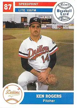 A 1987 baseball card of Rogers with the Tulsa Drillers