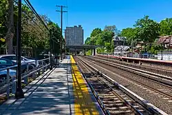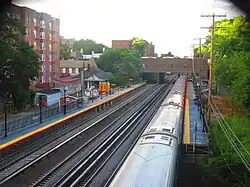 The Kew Gardens station is a station on the Main Line of the Long Island Rail Road (LIRR). It is located in the Kew Gardens neighborhood of Queens, New York City, near Austin Street and Lefferts Boulevard. The station is located within the City Terminal Zone, part of LIRR fare zone 1. It contains four tracks and two side platforms for the outermost tracks.