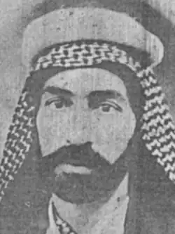 The popular anger started to rise, and the people started to get resentful from the British. They started making meetings and sessions, where they complain about the British government. The British administer couldn't go to them, fearing that they will kill him, so he sent Khairi, an Arab employee, to reason with them.[11] He went to one of their session and saw their resentment and anger. Iraq's greatest nobles and intellectuals called for the revolution. They wanted Ali bin Hussein to be Iraq's king.[12] Khairi went to the revolutionaries to calm them down about the revolution, but in deep down in his heart, he didn't want the British either. When he heard the national poetry and revolutionary people demanding their country's wealth, he forgot his fear and started cheering for them and cursing the British.[13] He started to read poetry, encourage people for vengeance against the British troops and demanding independence.[13] On 1 May 1917, he became the bailiff of Swayra division. His salary was 11,250 dinars. He resumed for two months, in June, until the British called him to investigate with him, because of an article he wrote in the journal of Sada Al-Islam, cursing the British.[14] He worked at a lot of jobs, until he was exiled to Hengam Island, because of his hatred to the British. He came back on 1 April 1921.[15]