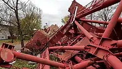 Kherson TV Tower (Ukrainian: Херсонська телевежа) was a 199 m (653 ft) tall steel space framed truss communications tower located in the Ukrainian city of Kherson.[2][3][4] The building was uniquely built, having been built by using the cross bracing system.[2] The tower was a truss TV tower, specifically, a Vierendeel truss tower, wherein a structure's members are not triangulated but form rectangular openings instead (see Vierendeel Truss).[2] The tower had an antenna that measured 199.95 m (656 ft) and a roof that measured 189.89 m (623 ft).[2][3] The tower possessed a total height of 200 m (656 ft), and was the tallest structure in the Kherson Oblast.[2]