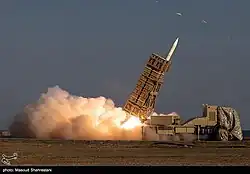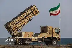 The Khordad 15 (Persian: پانزده خرداد) is an Iranian designed and built surface-to-air missile (SAM) system.[1][2] The system was unveiled to the public on 9 June 2019 in an address made by Iranian Defence Minister Amir Hatami in Tehran, Iran.[2][3] The system was developed by the Iran Aviation Industries Organization (IAIO). It has the capability to detect and intercept fighter jets, stealth targets, unmanned combat aerial vehicles (UCAV) and cruise missiles.[2] It operates in conjunction with Sayyad-3 missiles.[1][2] The surface-to-air missile system was developed in order to counter missiles and other aerial threats presented by the presence of extra-regional forces at military bases in countries around Iran. It was unveiled amid escalating tensions with the United States and Europe's failing attempts at upholding its commitments to the 2015 Iran nuclear deal.[4]