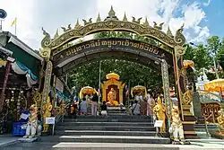 Khruba Siwichai became the new abbot of Wat Ban Pang after the former abbot, Khruba Khattiya, passed away.[7] Soon after, he began building a new temple and finished it in 1904, naming it Wat Sri Don Chai Sai Mun Bun Rueng even though villagers still referred to it as a Wat Ban Pang.[8] This new temple was but the beginning of a career involving the repair and construction of more than one hundred religious and non-religious projects such as temples, roads, and bridges. Some of his more renowned monuments were temples on the top of Doi Suthep, the Suan Dok temple in Chiang Mai and the reliquary at the Camthewi temple in Lamphun.[9] Villagers were urged to donate their money and labor as an act of merit (bun). Nationally known Buddhist monk and writer Phikkhu Panyanantha described Khruba Siwichai as a monk not of rank, but of the people and gained massive popular support and the status of a ton bun (holy men).[10] A highly respected northern Thai monk writes: