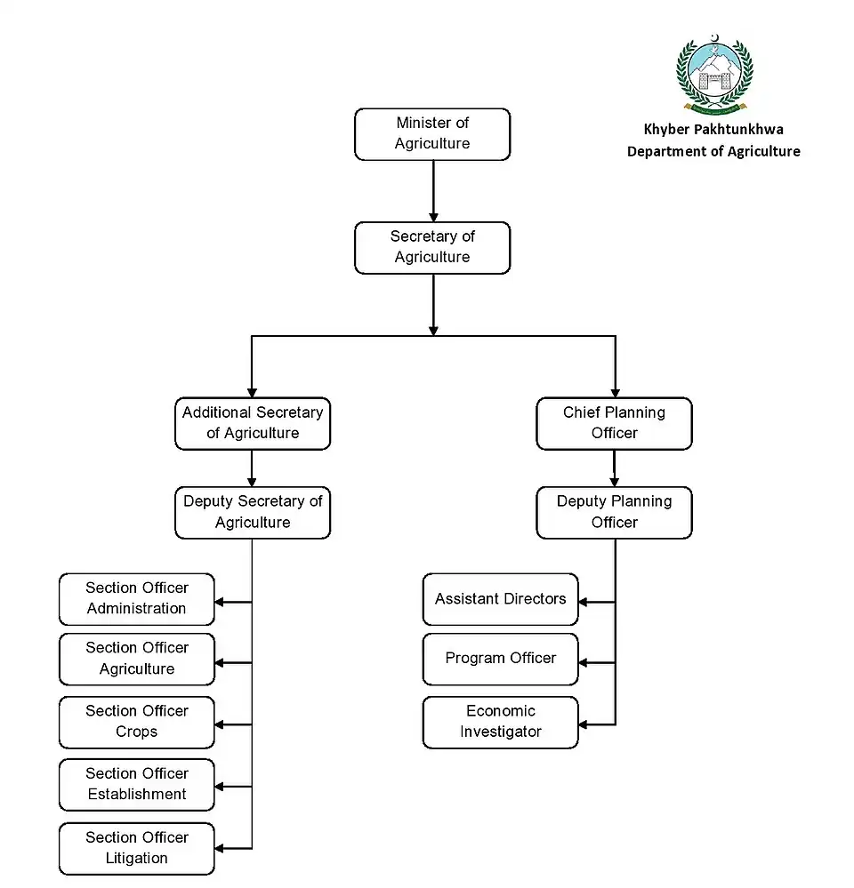 The department is under the control and supervision of the Khyber Pakhtunkhwa Minister for Agriculture, a political appointee of the Chief Minister of Khyber Pakhtunkhwa. The Secretary of Agriculture, also appointed by the Chief Minister, assists the Agriculture Minister in managing the department and assumes the duties of the Minister in his absence.