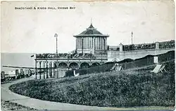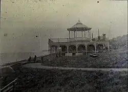 The original building was a bandstand funded in 1903–1904 by Thomas Dence (1840–1918), a local developer who had been involved in the Frome Park Estate in Stroud Green and roads in the parish of St Mary, Islington, and owned property in Herne Bay.[6][8][9][10][11] Dence had moved to Herne Bay for his health, bought the Downs, laid out roads at the top and built himself a house on Beacon Hill close by.[12] He conveyed the remaining sloping land back to the council, and in 1901 and 1903 suggested plans for a bandstand.[3][4][12] He had in mind: