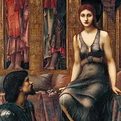King Cophetua and the Beggar Maid is an 1884 painting by the Pre-Raphaelite artist Edward Burne-Jones. The painting illustrates the story of 'The King and the Beggar-maid", which tells the legend of the prince Cophetua who fell in love at first sight with the beggar Penelophon. The tale was familiar to Burne-Jones through an Elizabethan ballad published in Bishop Thomas Percy's 1765 Reliques of Ancient English Poetry and the sixteen-line poem The Beggar Maid by Alfred, Lord Tennyson.[1][2]