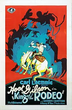 King of the Rodeo is a 1929 American silent Western film directed by Henry MacRae and produced by and starring Hoot Gibson. It was distributed through Universal Pictures.[1]