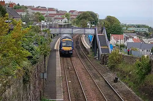 Kinghorn railway station is a railway station in the town of Kinghorn, Fife, Scotland. The station is managed by ScotRail and is on the Fife Circle Line, 22+34 miles (36.6 km) north east of Edinburgh Waverley.