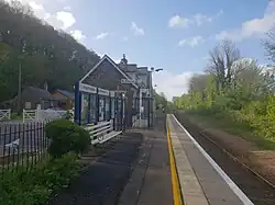 Kings Nympton railway station, also spelt King's Nympton, is a request stop on the Tarka Line in North Devon, serving the civil parishes of Chulmleigh, Burrington and King's Nympton. The station is located at Fortescue Cross, a road junction on the A377, around 2+1⁄2 miles (4 km) from its namesake village. It is 26 miles 21 chains (42.3 km) from Exeter Central at milepost 197.75 from London Waterloo.[1] The station and all trains are operated by Great Western Railway (GWR).
