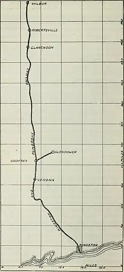 Railroad map of K&P from Kingston to Wilbur