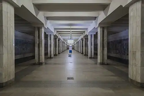 Kirovskaya (Russian: Кировская) is a station on the Avtozavodskaya line of the Nizhny Novgorod Metro. It opened on 15 November 1989 along with Park Kultury as part of the Metro's third phase.[1] It is in the Avtozavodsky district of Nizhny Novgorod at the intersection of Prospekt Lenina and Prospekt Kirova, the street for which the station is named.