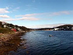 Kjosen (Norwegian), Muotkevuotna (Northern Sami), or Muotkalahti (Kven)[3] is a village in Tromsø Municipality in Troms county, Norway. The village lies on the island of Kvaløya, about 13 kilometres (8.1 mi) west of the city of Tromsø. It is located at the end of the Kaldfjorden, immediately north of the village of Kaldfjord. The village of Ersfjordbotn lies about 5 kilometres (3.1 mi) to the west and the village of Kvaløysletta lies about 3 kilometres (1.9 mi) to the east.