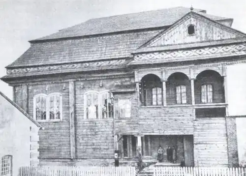 The Końskie Synagogue was a former Orthodox Jewish congregation and synagogue, located on Bóżnicza Street (currently on the corner of Kaznowskiego and Piłsudskiego Streets), in Końskie, in the Świętokrzyskie Voivodeship of Poland. Completed in 1780 in what was then the Polish–Lithuanian Commonwealth, the large wooden synagogue, one of the first large synagogues of its kind built at the invitation of the King of Poland, served as a house of prayer until World War II when it was destroyed by Nazis in September 1939, soon after their conquest of the town.[1]