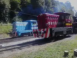 In 1973, traffic on the Čermelska Railway was temporarily suspended due to the poor condition of the line, but eventually the railway was rebuilt due to the great public interest. Some of the sleepers, rails and gravel beds have been replaced. Operation on the reconstructed line was resumed two years later.[1] p. 18, 27 A further reconstruction of the route took place between 1986 and 1987, when a large part of the tracks between the stations was exchanged. During this reconstruction, a tamping machine was borrowed from the Tatra Electric Railway.[1] p. 18, 27 In addition to track maintenance, the railroad also required regular maintenance of the two locomotives to maintain seasonal operation. Occasionally, the season had to be interrupted or even terminated prematurely due to malfunctions of both vehicles. After the end of the season they were always transported to the depot in Košice, where they were regularly maintained.[1] p. 30-31