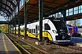 Koleje Dolnośląskie obtained their first electric multiple unit from Przewozy Regionalne in 2013 (it was an EN57AL which had been retrofitted the previous year). Three more EN57-class units were purchased and retrofitted at the cost of the Lower Silesian government. The company also purchased completely new electric vehicles – the first Newag Impuls units (31WE) were ordered in 2011 in a batch of five. In 2014 the operator ordered six Impuls 36WEa units; the following year, they ordered five more 31WE units.[1] The largest order in KD's history was its purchase of eleven 45WE units in 2017,[2] which, when the order was placed, were described as "the most well-equipped and comfortable trains in the country".[3]