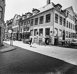 No. 52 was owned by brewer Hans Andersen Rold from 31 October 1713. He was married to Kirsten Lyngbye; after his death on 1 May 1720, her second marriage was to Otto Lerche. The son of a pastor from Svindinge on Funen, Lerche had originally intended to follow in his father's footsteps, having graduated as a theologian in 1715. On 3 July 1719, he had been granted royal permission to lease Kristiansholm for an annual rent of 20 wagon loads of hay. After his marriage to Kirsten Lyngbye he turned to brewing, continuing the brewery in Kompagnistræde that she had brought into the marriage. The brewery, together with most of the other buildings in the area, was destroyed in the Copenhagen Fire of 1728. After the fire, Lerche bought the adjacent fire sites of No. 53, No. 72 and No. 73 and merged them into a single property. The current building on the site was constructed for him in 1730 by master mason Lars Erichsen and master carpenter Olle Nicolaisen. The adjacent property at No. 74 (now Knabrostræde 22) was also built for Lerche, The Lerche family found a temporary home at Lille Torvegade No. 15 in Christianshavn while the new buildings were constructed. From 1730 until 1744, Lerche was one of the city's 32 Men and also director of Enkekassen. In 1731, he was mentioned as alderman of the Brewers' Guild.[2]