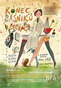 Konec básníků v Čechách is a 1993 Czech comedy film directed by Dušan Klein and written by Klein with Ladislav Pecháček.[1] The fourth installment in the "Poets hexalogy", the title is preceded by How the World Is Losing Poets (1982), How Poets Are Losing Their Illusions (1985), and How Poets Are Enjoying Their Lives (1988), and followed by Jak básníci neztrácejí naději (2004) and Jak básníci čekají na zázrak (2016).[2] The film stars Pavel Kříž, David Matásek, Tereza Brodská, and Míla Myslíková. Set to a backdrop of the turbulent social changes after the Velvet Revolution in Czechoslovakia, the story focuses on Štěpán's struggle to adapt to new conditions brought about by the introduction of capitalism to the nation.