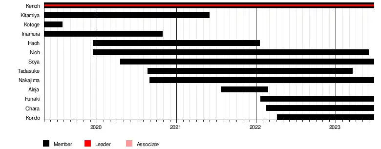 At Noah The New Year 2022 on January 1, Manabu Soya, Nio and Tadasuke fell short to Funky Express (Akitoshi Saito, King Tany and Mohammed Yone), Aleja and Hao defeated Stinger (Seiki Yoshioka and Yuya Susumu), and Kenoh successfully defended the GHC National Championship against Kaito Kiyomiya.[12] At Noah Bumper Crop 2022 In Sendai on January 16, Haoh turned on the stable, and Kenoh and Manabu Soya unsuccessfully challenged M's Alliance (Keiji Muto and Naomichi Marufuji) for the GHC Tag Team Championship.[13] At Noah Higher Ground 2022 on January 22, Hao went into a time-limit draw against former tag team partner Nio after betraying the stable. In the main event, leader Kenoh dropped the GHC National Championship to Masakatsu Funaki.[14] At Noah Gain Control 2022 In Nagoya on February 23, Aleja, Hajime Ohara and Tadasuke defeated Hao, Junta Miyawaki and Kai Fujimura. Aleja began showing compassion towards real life brother Kai Fujimura, after stopping Tadasuke's attack on him.[15] Two days later at "Noah Step Forwrard", after growing unsatisfied with Tadasuke's actions, Aleja decided to turn on Tadasuke, and left Kongo, defecting to "Noah Juniors", before reverting to his previous ring name "Alejandro".[16] At Noah Great Voyage in Fukuoka 2022 on March 21, (Katsuhiko Nakajima, Kenoh, Manabu Soya and Masakatsu Funaki teamed up in a losing effort against Sugiura-gun (Hideki Suzuki, Kazushi Sakuraba, Kendo Kashin and Takashi Sugiura).[17] On the first night of the Noah Majestic 2022 event from April 29, Hajime Ohara, Tadasuke and Shuji Kondo fell short to Los Perros del Mal de Japón (El Texano Jr., Nosawa Rongai and Super Crazy) and Nio fell short to Hao.[18] On the second night from April 30, Hajime Ohara, Manabu Soya and Tadasuke defeated Funky Express (Akitoshi Saito, King Tany and Mohammed Yone), Masakatsu Funaki successfully retained the GHC National Championship against Simon Gotch, and Katsuhiko Nakajima and Kenoh unsuccessfully challenged Sugiura-gun (Hideki Suzuki and Takashi Sugiura) for the GHC Tag Team Championship.[19] At Noah Dream On Final 2022 on May 21, Hajime Ohara, Hi69, Tadasuke and Shuji Kondo defeated Momo No Seishun Tag (Atsushi Kotoge and Daisuke Harada), Hao and Yo-Hey, Katsuhiko Nakajima, Manabu Soya and Masakatsu Funaki fell short to Sugiura-gun (Hideki Suzuki and Takashi Sugiura) and Masaaki Mochizuki, and Kenoh defeated Simon Gotch.[20] At CyberFight Festival 2022 on June 12, Katsuhiko Nakajima teamed up with Atsushi Kotoge and Yoshiki Inamura to defeat Burning (Tetsuya Endo and Jun Akiyama) and Kazusada Higuchi, and Kenoh defeated Daisuke Sasaki.[21] At Noah Destination 2022 on July 16, Katsuhiko Nakajima, Manabu Soya and Masakatsu Funaki fell short to Go Shiozaki, Kazuyuki Fujita and Takashi Sugiura, and Kenoh defeated Satoshi Kojima to win the GHC Heavyweight Championship.[22] At Noah Departure 2022 on August 5, Katsuhiko Nakajima and Manabu Soya defeated Anthony Greene and Stallion Rogers, and Hajime Ohara, Hi69, Kenoh and Tadasuke fell short to Alejandro, El Hijo del Santo, Kaito Kiyomiya and Último Dragón.[23] At Noah Grand Ship In Nagoya 2022 on September 25, Hajime Ohara, Hi69 and Tadasuke fell short to Alejandro, Extreme Tiger and Ninja Mack, Katsuhiko Nakajima and Masakatsu Funaki fell short to Kazuyuki Fujita and Keiji Muto, and Kenoh dropped the GHC Heavyweight Championship to Kaito Kiyomiya.[24] At Noah Ariake Triumph 2022 on October 30, Hajime Ohara, Manabu Soya and Shuji Kondo defeated Alejandro, Extreme Tiger and Shuhei Taniguchi, Hi69 and Tadasuke unsuccessfully challenged Stinger (Atsushi Kotoge and Seiki Yoshioka) for the GHC Junior Heavyweight Tag Team Championship, Masakatsu Funaki defended the GHC National Championship against Kazushi Sakuraba, Katsuhiko Nakajima and Kenoh unsuccessfully challenged TakaKoji (Satoshi Kojima and Takashi Sugiura) for the GHC Tag Team Championship.[25] At Noah Global Honored Crown 2022 on November 10, Hajime Ohara and Shuji Kondo defeated Atsushi Kotoge and Seiki Yoshioka to win the GHC Junior Heavyweight Tag Team Championship and Masakatsu Funaki dropped the GHC National Championship to El Hijo del Dr. Wagner Jr.[26] At Noah The Best 2022 on November 23, Hi69 and Tadasuke fell short to Funky Express (Akitoshi Saito and Mohammed Yone), Katsuhiko Nakajima, Kenoh and Manabu Soya fell short to Kaito Kiyomiya, Masa Kitamiya and Satoshi Kojima, and Hajime Ohara and Shuji Kondo dropped the GHC Junior Heavyweight Tag Team Championship to Atsushi Kotoge and Seiki Yoshioka.[27] At N Innovation 2022 on December 23, Hi69 fell short to Shoki Kitamura, and Hajime Ohara, Shuji Kondo and Tadasuke fell short to Alejandro, Andy Wu and Ninja Mack.[28]