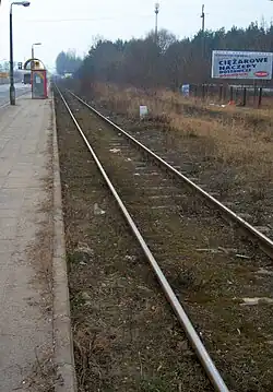 The entire length of the line was a single track with a rail gauge of 1,435 mm[5] and was managed by the regional branch in Poznań.[6] The operational speed was 40 km/h up to the 1.618-kilometer mark, while the remaining section was limited to 30 km/h.[7] Additionally, usage restrictions were imposed on the line – operation was not permitted from Monday to Friday between 12:01 AM–6:00 AM and 10:00 PM–12:00 AM, on Saturdays between 12:01 AM–6:00 AM and 6:00 PM–12:00 AM, and throughout the entire day on Sundays.[8] The line was classified as C3, meaning the maximum axle load was 196 kN/axle (20.0 t/axle), and the maximum linear load was 71 kN/m (7.2 t/m).[9] The route was not equipped with automatic train braking magnets.[10]
