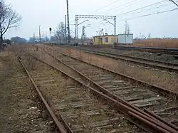 The history of the Konin–Kazimierz Biskupi railway dates back to the 1920s when Konin was connected by a narrow-gauge line to Anastazewo and Sompolno. The Anastazewo–Konin Wąskotorowy railway was built in 1912 thanks to the efforts of the Gosławice Sugar Factory, but it was not until World War I that the German military extended the line to the village of Czarków, near Konin.[5] It was a single-track passenger and freight line, in operation until 1965 when the Anastazewo–Konin Wąskotorowy railway tracks were dismantled between Jabłonka Słupecka railway station and Konin, as the Konin Coal Mine began removing the tracks for the Kazimierz Południe open-pit mine.[11]