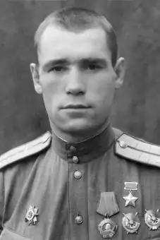 Konstantin Afanasyevich Novikov (Russian: Константин Афанасьевич Новиков; 6 August 1919 — 9 January 1958) was a Soviet flying ace during World War II, who was awarded the title Hero of the Soviet Union on 1 May 1943 for his initial victories. Historians disagree on the exact breakdown of his final tally at the end of the war with Mikhail Bykov indicating that he totaled 28 solo and five (or three) shared shootdowns,[1] and Andrey Simonov claiming that he had 31 solo and nine shared instead..[2]