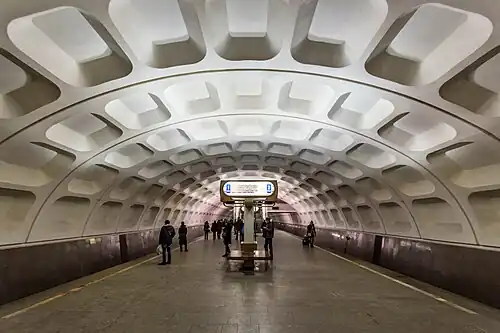 Krasnogvardeyskaya (Russian: Красногварде́йская) is a Moscow Metro station in the Zyablikovo District, Southern Administrative Okrug, Moscow. It is on the Zamoskvoretskaya Line, between Domodedovskaya and Alma-Atinskaya. Krasnogvardeyskaya opened on 7 September 1985 and was named after the former Krasnogvardeysky district.