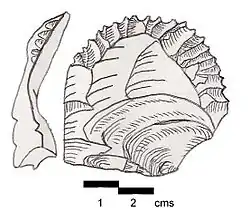 Ksar Akil Flake is an oval type of Lithic flake with fine, regular teeth at frequent intervals. The flint tool is named after the archaeological site of Ksar Akil in Lebanon, where several examples were found and suggested to date to the late Upper Paleolithic.[1]