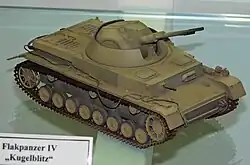 The Flakpanzer IV Kugelblitz (German for "ball lightning") was a German self-propelled anti-aircraft gun developed during World War II. By the end of the war, only a pilot production of five units had been completed. Unlike earlier self-propelled anti-aircraft guns, it had a fully enclosed, rotating turret.