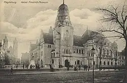 The museum building is located at Otto-von-Guericke-Straße 68–73, only a few metres from Magdeburg Cathedral. It was built from 1901 to 1906 as a municipal museum for art and arts and crafts and was given the name Kaiser-Friedrich-Museum. The executed design had emerged indirectly from an architectural competition held in 1897 and came from the Viennese architects Friedrich Ohmann and August Kirstein.[3] It was built in the agglomerated building type.