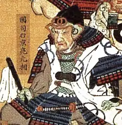 Kunishi Motosuke (国司 元相; 1492 – February 11, 1592) was a Japanese Samurai of the 16th century, who served the Mōri clan.[1][2] The son of Kunishi Arisuke, Motosuke served as a senior retainer of Mōri Takamoto. Motosuke fought with distinction at the Siege of Koriyama. Later, he was chosen as one of the five Bugyō of the Mōri clan.